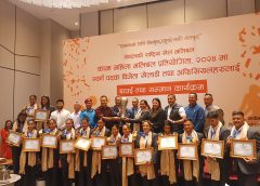 ०९ असाेज, काठमाडाैं । शिखर इन्स्योरेन्स कम्पनीले मंगलबार काभा महिला भलिबल क्लब च्याम्पियनसिपको उपाधि विजेता नेपाल पुलिस क्लबलाई नगदसहित सम्मान गरेको छ। माल्दिभ्समा भएको प्रतियोगिताको उपाधि जितेर पुलिस टोली सोमबार स्वदेश फर्केको हो। च्याम्पियन टोलीका खेलाडी, प्रशिक्षक, अफिसियललाई गरी १६ जनालाई जनही ५० हजार १ रुपैयाँसहित सम्मान गरिएको हो ।