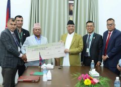 प्रधानमन्त्री केपी शर्मा ओलीलाई सिंहदरबारस्थित प्रधानमन्त्री तथा मन्त्रिपरिषद्को कार्यालयमा भेटेर विभिन्न सरकारी र निजी क्षेत्रका वित्तीय संस्थाका अध्यक्ष एवं प्रमुख कार्यकारी अधिकृतले शुक्रबार आफ्नो संस्थागत सहयोगको चेक हस्तान्तरण गरेका हुन् ।