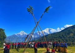 २६ असोज, म्याग्दी । खेतबारीमा लहलह झुलेका धान र कोदोको बाला। वर्षा रोकिएपछि शरदयाममा खुल्न थालेको निलो आकाश। हरियाली पहाडको पृष्ठभूमिमा देखिने सेताम्मे हिमशृङ्खला। रातोमाटो र कमेरो पोतेर रङ्गिएका घर। लिङ्गे र रोटेपिङ्गमा मच्चिदाँको आनन्द।